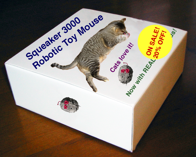 Packaging for the Squeaker 3000 Robotic Toy Mouse