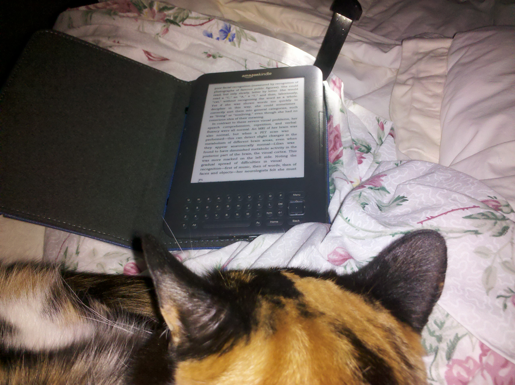 Throughout the storm, my cats kept alternating between being a little freaked out by the howling winds and being fascinated by the flashlight beam as I moved from room to room. Eventually, I settled into bed with my Kindle (the case has a built-in light), with one cat on my lap and the other by my side. It was pretty cozy.